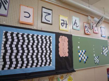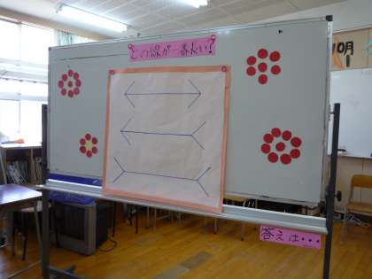 支援学級では、トリックアートに挑戦しました。何に見えるかな?線がまっすぐ見えるかな?