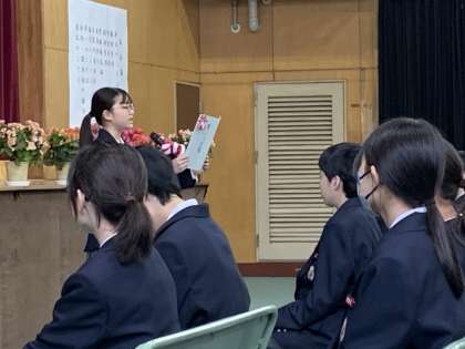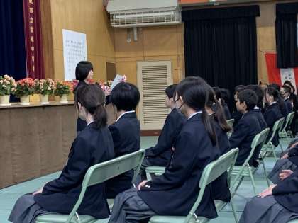 在校生代表からは、新入生を優しく迎え入れる「歓迎のことば」があり,新入生代表からは、中学校3年間の決意を表す「誓いのことば」がありました。
