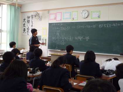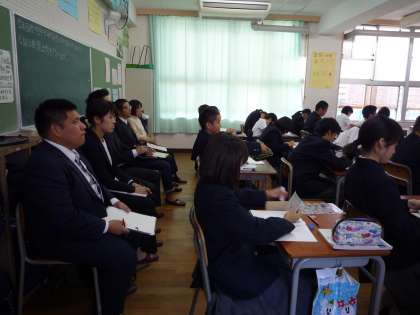 本日は校種間連携で、北中島小学校の先生方が5名いらっしゃいました。1年生の生徒の中には、懐かしい先生もいらっしゃったようです。