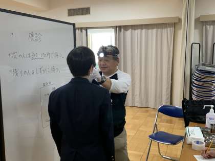 耳鼻科校医の江崎先生に、全校生徒の耳鼻を診ていただきました。