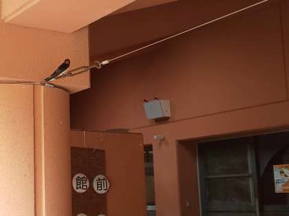 建物入口にはたくさんのツバメが子育てしています