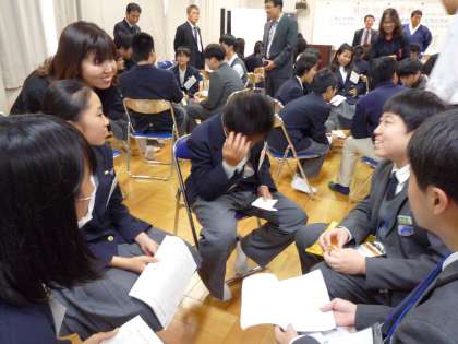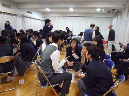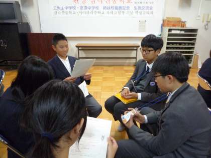 各グループに分かれて、自己紹介、質問、遊びの紹介です。最初はお互いに緊張して先生たちの助けも借りましたが、あとは自分たちでコミュニケーション!