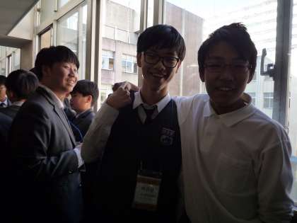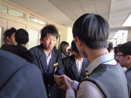 実は、交流会の前に、すでに授業の合間の休み時間に廊下で3年生と交流。韓国の生徒(1、2年生)はやはり3年生と話すのはちょっと怖かったようです。