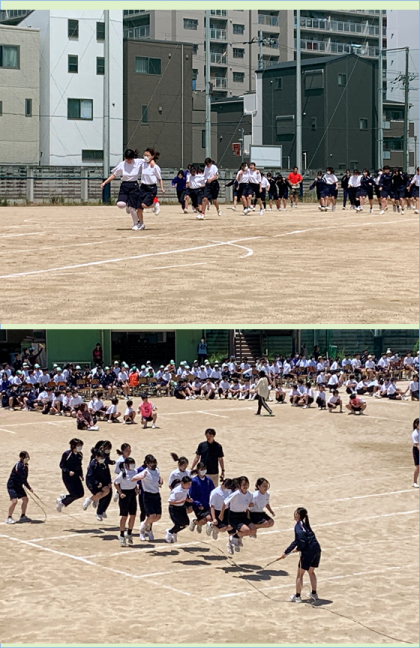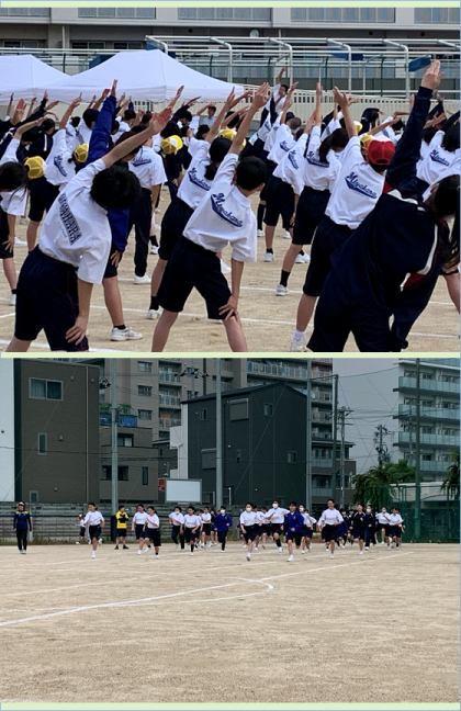 本番さながらに全体の流れを通しました。元気いっぱいの声がグランドに響き渡りました。