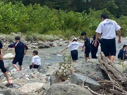 マウンテンバイクなど昼食までの空いた時間に河原散策