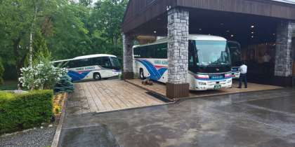 ホテルを出てバス出発です
