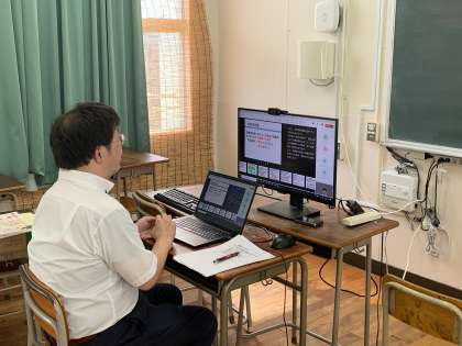 保護者の方は、子どもの在籍する教室に分かれて、リモートで説明を聞きました。