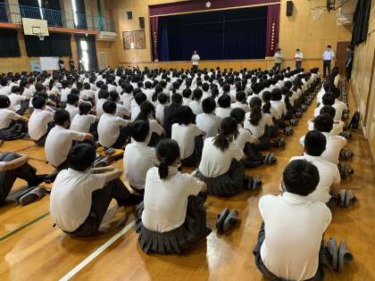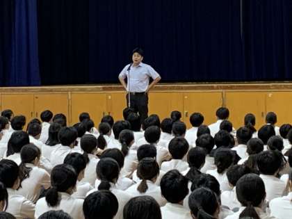 生徒指導主事の先生からは、「学校をきれいにしよう」、「あいさつをきちんとしよう」という話がありました。