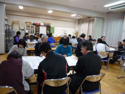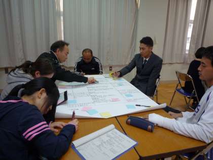 研究授業に引き続き、多目的室では授業に参加した先生方による授業の研究が行われました。授業の良かった点、改善すべき点などをグループで話し合い、発表しました。他校からも教育委員会からも授業、研究協議に参加してくださった先生方、ありがとうございます。