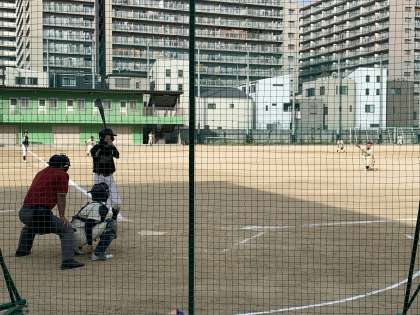 三国中学校の野球部が来校し、練習試合を行いました。顧問の先生が指導を入れながら経験を積ませました。生徒もキビキビとした行動をとっていました。