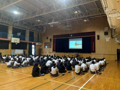 JICA国際協力の樋口愛美氏をお招きし、ラオスでのJICA海外協力隊に至った経緯やラオスでの暮らしや文化についてご講演いただきました。そして国際協力の必要性や世界の人々のために活躍している日本人がいることを学びました。
