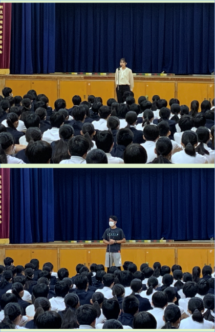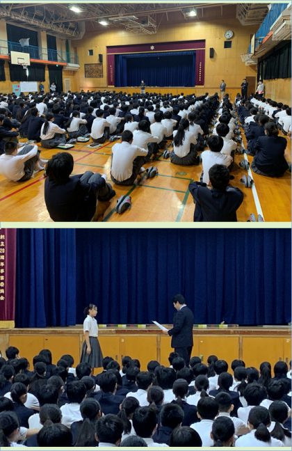 生徒指導主事の先生からは、地域に誇れる学校、地域が誇れる学校になるように、一人ひとりの行動に留意してくださいという話がありました。