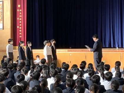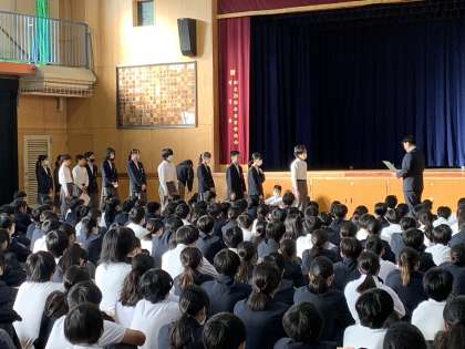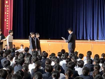 また、先日行われました大阪市立中学校総合文化祭で、生活文化部の生徒10人と3年生の授業作品で4人が、優秀作品ということで表彰されました。日ごろからの生徒の頑張りが認められました。