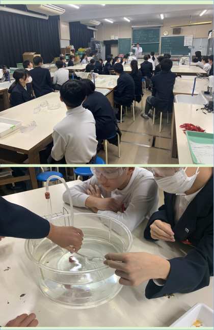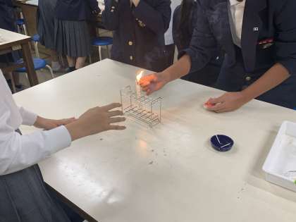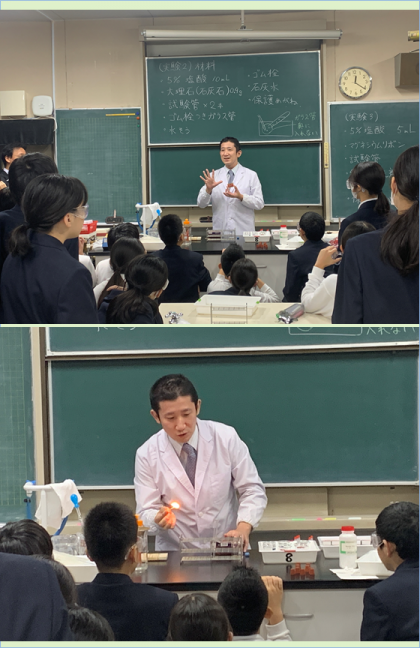 理科の実験で、二酸化炭素と水素の発生とその気体の確認をおこないました。
