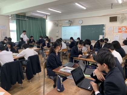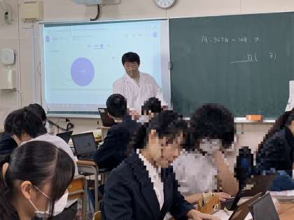 単元「地球 宇宙を観る」を学習しています。3〜4人の班に分かれて、惑星の質量や太陽からの距離を考え、発表を行いました。そして太陽からの惑星の順番を考えて、公転周期の違いに気づかせる授業となりました。