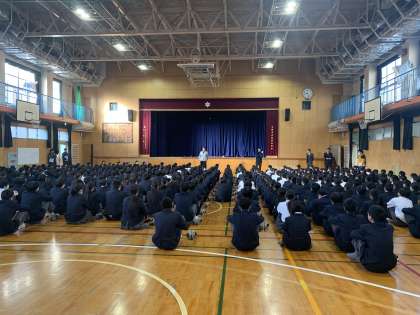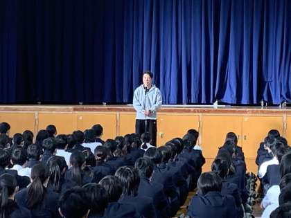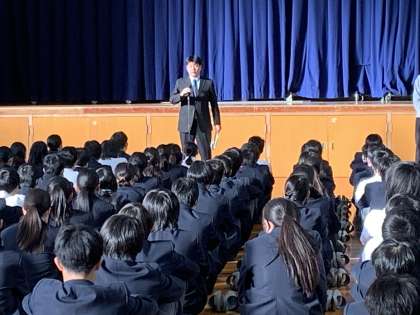 生徒指導主事の先生からは、「時間を守る。ルールを守る」ことについての話がありました。守れなかったことは守れるように努力する。努力することで人は成長できるという話でした。
