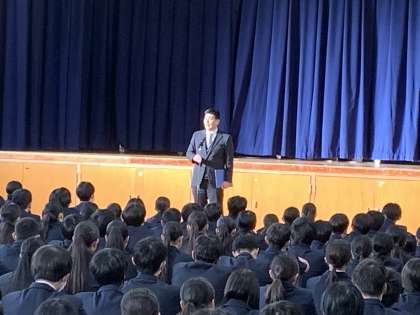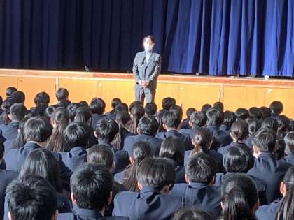 生徒指導主事の先生からは、「金銭面でのトラブルにならないように気をつける。SNSでのトラブルにならないように気をつける。」という話がありました。お互い尊重し合って安全・安心な学校にしていきましょう。