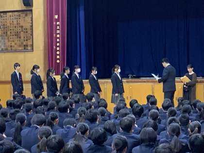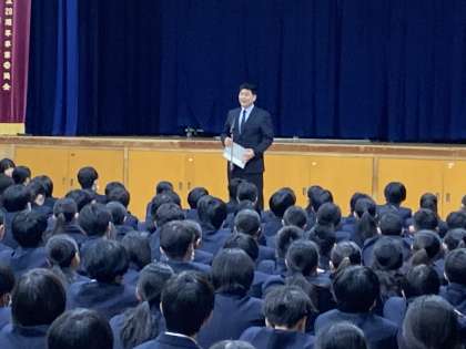 生徒指導主事の先生からは、自分の責任や役割を果たすことの大切さについて、話がありました。委員会活動や学級活動等の自分の役割を一生懸命に努めることで、周りの人からの信頼を得ることができます。