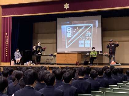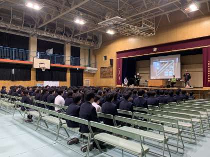 視覚障がい者団体Boyo-art様から講演を聞き、視覚障がい者の方と盲導犬への理解を深めました。