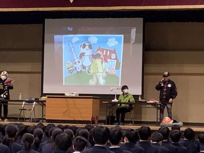 1年生にスライドとお芝居を見せながら、説明していただきました。