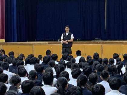 生徒指導主事の先生からは、先週に引き続き夜間徘徊の禁止についての話と上級生からのプレッシャーについての話がありました。公園やコンビニ等で被害やトラブルになるケースがあります。夜間に出歩くことのないように注意してください。また、下級生は上級生が思ってる以上にプレッシャーを感じるものです。上級生は下級生に対しても丁寧な言葉遣いを心掛けてください。