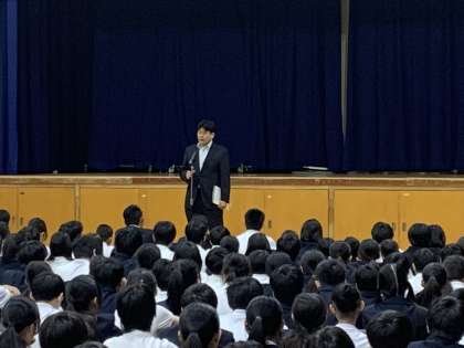 校長先生からは、テストが返却された後の見直しの大切さについて、経済アナリストの森永拓郎さんの勉強の仕方を例に出して話をしました。プラス思考の信念を持って学習に取組めば、良い方向に変われるという話でした。