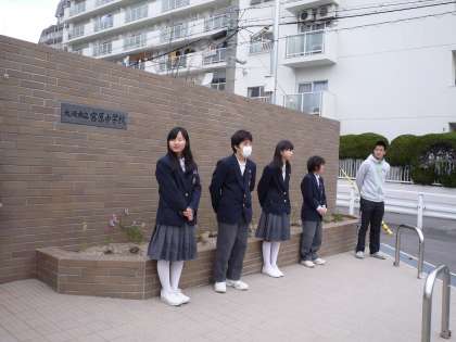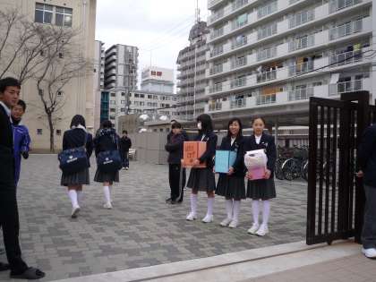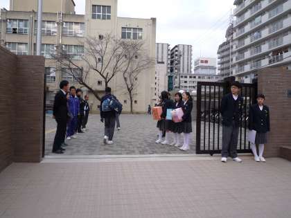また、いつもの通り、風紀委員は門の外で地域の方々にも朝の挨拶をし、先生たちは門の中で花道を作って全校生徒を迎えています。