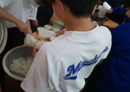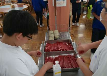 朝食準備中