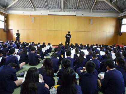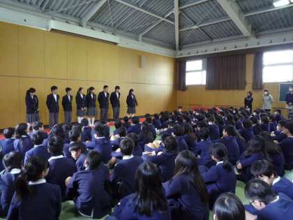 今日の午後は、校下の宮原小学校と北中島小学校の6年生がオリエンテーションに来てくれました。中学校に入ったら、何が変わってどんなことをするのかな?校長先生と生徒指導主事の森田先生のお話、そして生徒会役員への質問会もありました。