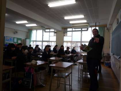 本日は、ボランティアの方々による今年度最後の「絵本読み聞かせ」が行われました。1年生と2年生の教室からはいろいろなお話が聞こえる中で、スティーブさんの迫力あるジェスチャー付英語のナレーションも響きました。