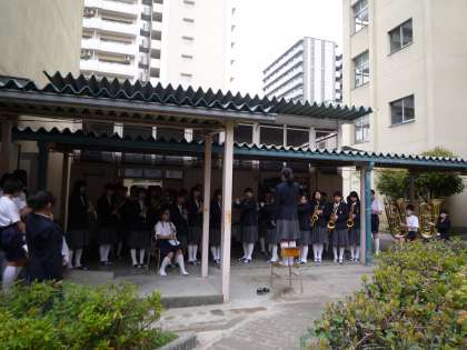 本日より新1年生の仮入部が始まります。一度決めた部活動ですから、ぜひ3年間やり通していける活動を選びましょう。その仮入部期間に、音楽部はアピールを兼ねて恒例の「ランチタイムコンサート」を行っています。