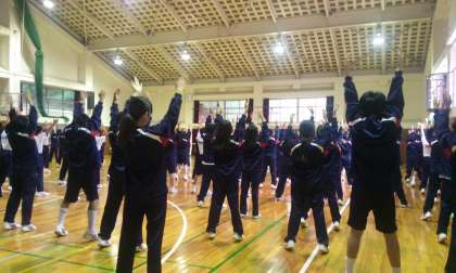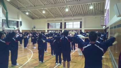 全員6時に起床。朝の集いでラジオ体操をしました。