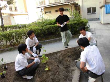 6月の声を聴くと、さすがに日差しも強くなってきました。6月1日には、ふれあい友の会による恒例の夏野菜の農園づくりで、皆で苗を植えました。