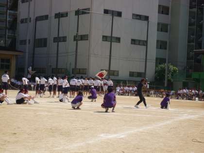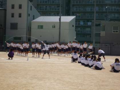 今年から、組体操に替わって、3年生の学年種目として大縄跳びがプログラムにくわわりました。