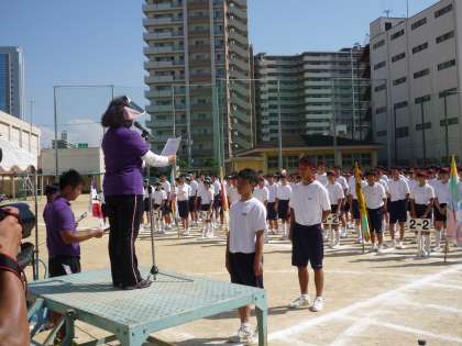 閉会式と表彰式です。今年初めての取組として縦割りの団対抗競技を行いましたが、学年を超えて声援を送る生徒たちを見ると、大成功だったと思います。
