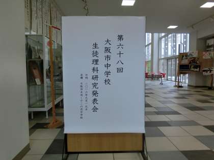 9月19日(祝日)に、咲くやこの花中学校で、第68回大阪市中学校生徒理科研究発表会がありました。科学部などの発表や、各校からの自由研究等の優秀作品が展示されました。宮原中学校も1・2年生の10作品を出展しました。保護者の方とともに見に来てくださり、ありがとうございました。他校の自由研究を見て、いい刺激を受けたことと思います。