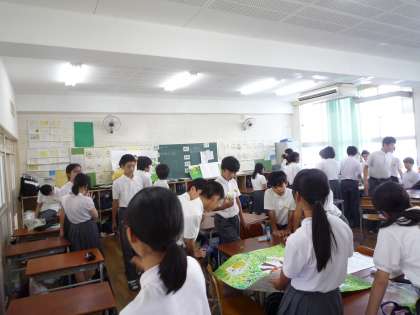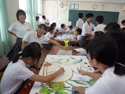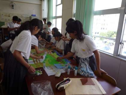文化祭で展示・スライド劇を行う1年生は、一生懸命ちぎり絵の作品の仕上げにかかっています。こちらも本番が楽しみですね。