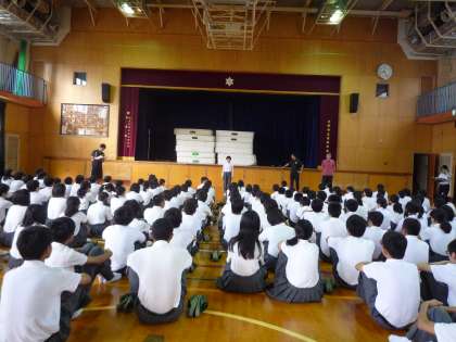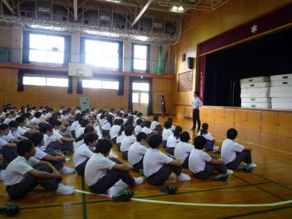 今日は、1年生の学年集会にお邪魔しました。明日から中間テスト一週間前、宮川先生から勉強の仕方、勉強する意義とともに、勉強するのにも仲間づくりや環境整備が大切だ、というお話がありました。