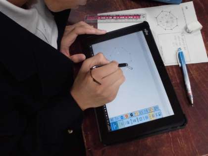 タブレットを使った数学のモデル授業を行い、参加者も大変興味をもって参観していました。