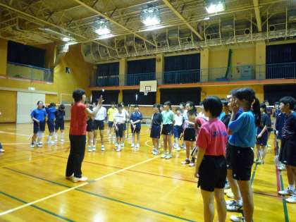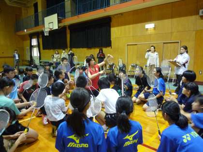本日、トップアスリート事業の一環として、本校に元バルセロナ・オリンピック選手、岩城ハルミさんにお越しいただき、バドミントン部の生徒が「夢・授業」を受けました。多くの生徒が参加し、また、保護者の方々も見学に来られました。