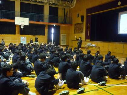 日頃、避難訓練はしているものの、どこか他人事のような生徒たちにも、講話後のアンケートでは、「避難する際の家族との待ち合わせ場所について語り合う」「食糧備蓄をする(大阪市条例では一週間の備蓄が必要)」「地域の人たちを助ける」といった意識が芽生えた様子がうかがえました。