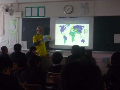 本日5限目は、エジプト、中国、ブラジル、ロシアから特別講師に来ていただき、それぞれのお国についてお話をしていただきました。1年生の生徒は事前に各クラスで調べ学習をしているので、講師の方の質問にもけっこう答えられたようです。