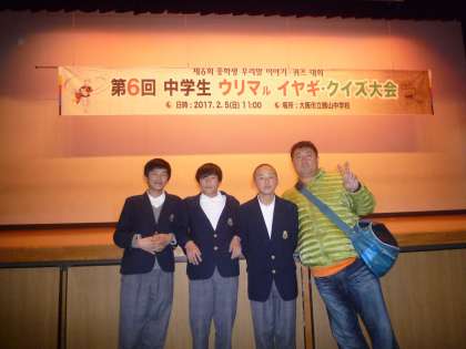 2月5日(日)、勝山中学校にて「ウリマル イヤギ・クイズ大会」(韓国語のスピーチコンテスト&クイズ大会)が行われました。本校からも民族学級生3名がクイズ大会に出場しました。団体戦は残念ながら予選敗退でしたが、個人戦では、何と準優勝しました。