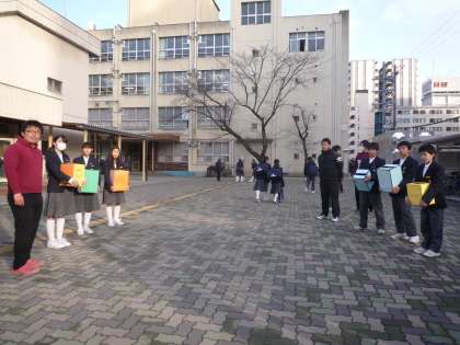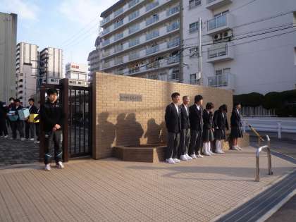 今朝も生徒会役員は大きな声でユニセフ募金を呼びかけています。二日目の今日は、初日より募金する生徒も増えました。そして、風紀委員もいつもの通り、正門に並んで、校内生徒・校外の方を問わず「あいさつ運動」をしています。
