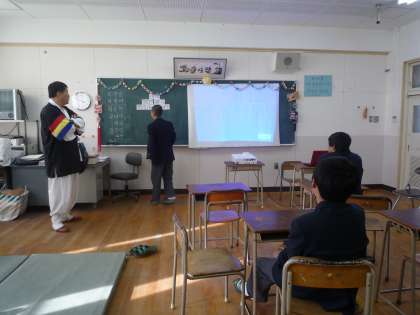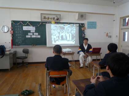 今日はプロジェクターでいろいろな歴史的資料を見ながら、「なぜ民族学級があるのか」について学んでいました。