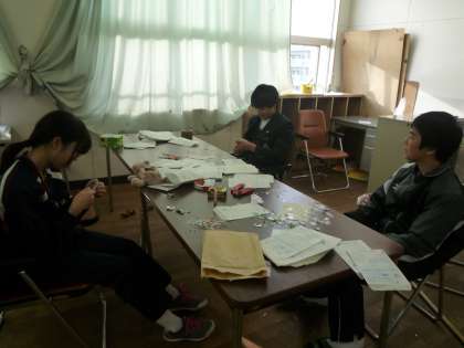 先週、ユニセフ募金活動を終えた生徒会。今日ふらりと生徒会室を覗くと、会長以下、役員の皆さんがベルマークの整理をしていました。全校生徒のために、宮原中生徒会はがんばっています。