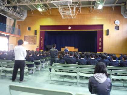 今日は、すでに卒業式の準備が進んでいる体育館で、尾松先生のお話を聞きました。人間は社会の中でうまく回っていく歯車のようなものだけど、機械の歯車とは違い、不良品になっても取り替えることはできない。みんな一人ひとりがすばらしい品質をもって巣立っていってほしいとの思いをお話してくださいました。