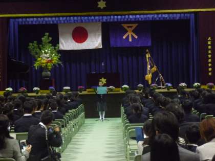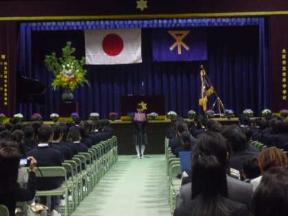 在校生を代表して、先日訪韓研修から帰ったばかりの香山さんが「歓迎のことば」を述べ、それに応えて新入生の「誓いのことば」がありました。その後引き続いて、担任や副担任の先生のご紹介をしました。