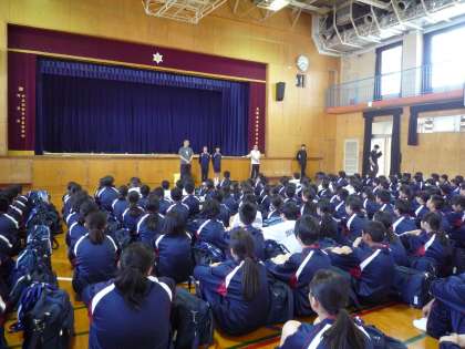 1年生は3時30分、無事に学校到着。その後体育館で解散式を行いました。教頭先生からの講評では、規律を守ってきちんと行動でき、すばらしかったとのこと。来週の注意事項・お知らせを聞いて、予定通り、3時50分に解散、下校となりました。
