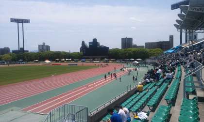 本日は市内各所で中学校体育連盟の大会が行われています。長居陸上競技場には今日と明日、本校陸上部も出場しています。